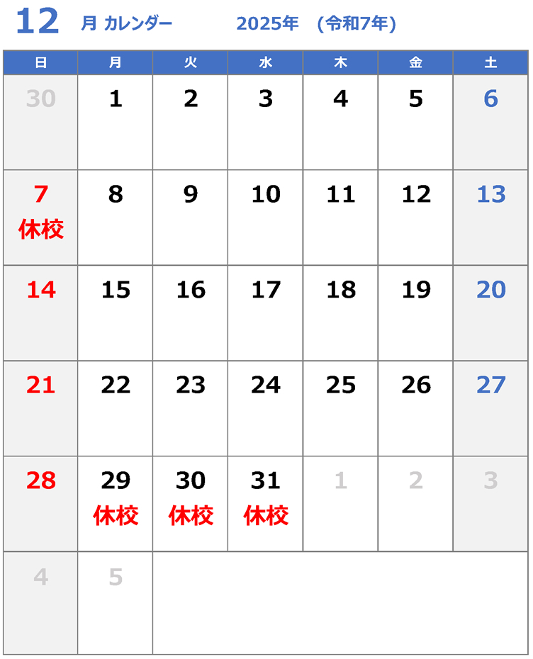 休校日のご案内